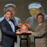 前年12月に死去した尾崎将司氏に「JGJA大賞特別賞」を贈ることを決定。新年会にて長男、尾崎智春氏に記念の盾を贈呈しました。